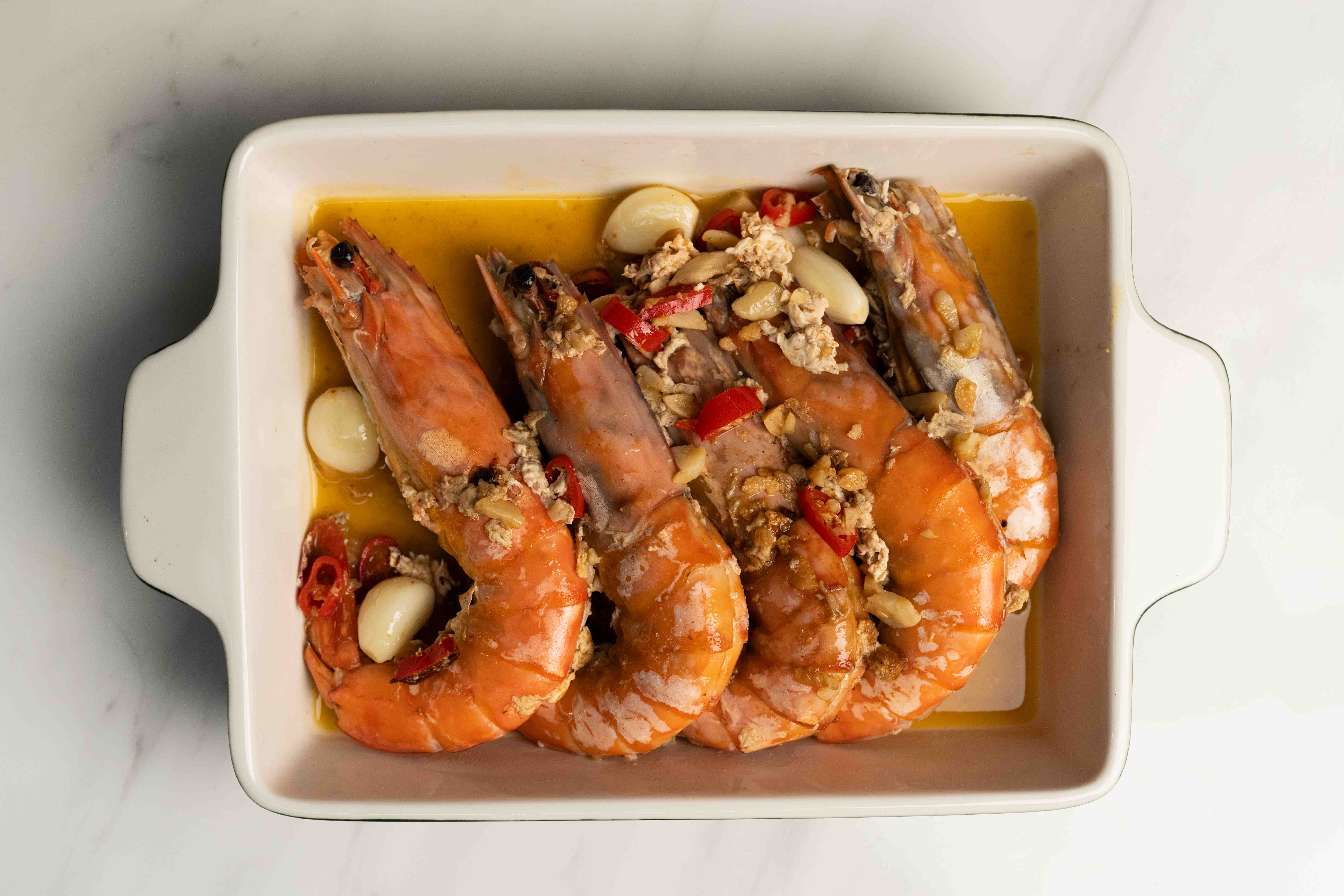 • 建議流水退冰5~10分鐘內,微退冰即可先將蝦體與冰先分離,快速烹煮以保新鮮。
